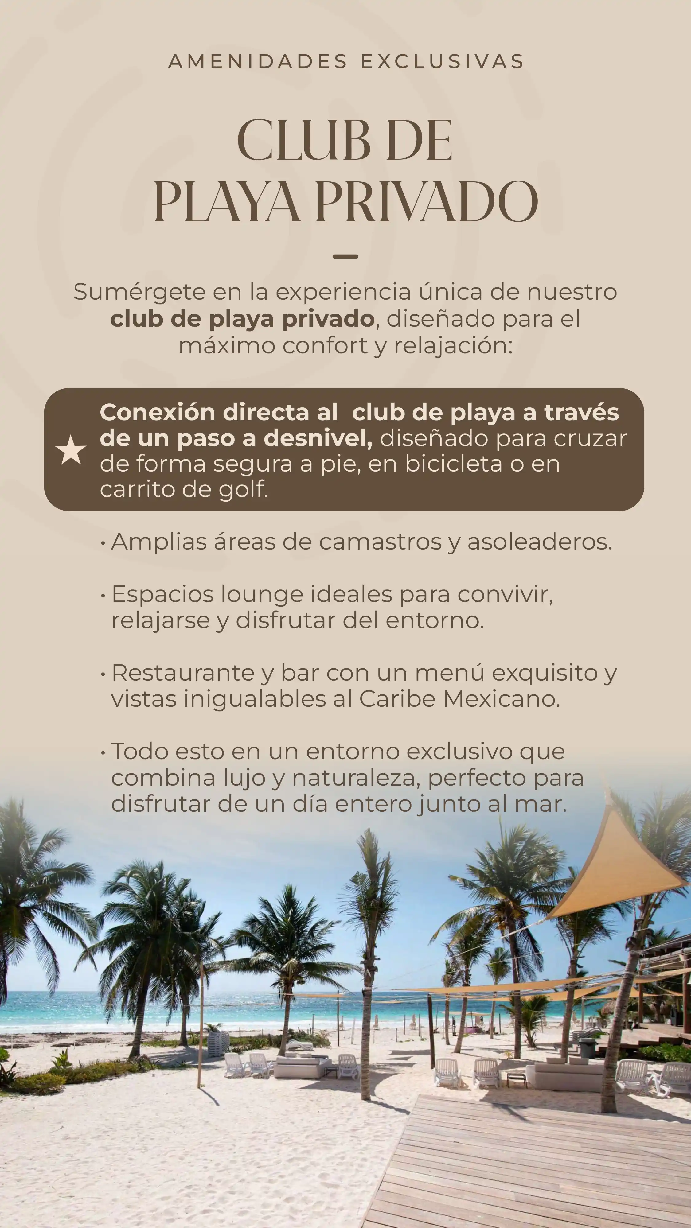 Sé parte de este refugio exclusivo con CLUB DE PLAYA PRIVADO, donde solo 47 familias podrán crear su legado familiar en la ubicación más privilegiada del Caribe Mexicano.